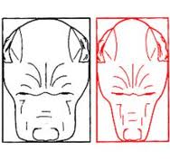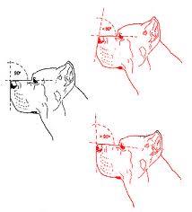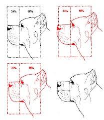 Axes supérieurs du crâne et du chanfrein parallèles ou trop convergents ; convergence des faces latérales du museau.